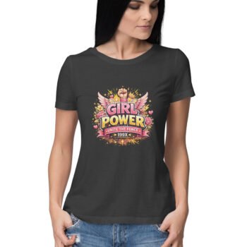 Girl Power Women Graphic T-Shirt – Empowerment Printed Tee | Trendy Stylish Half Sleeve Round Neck T-Shirt for Women | SkyingGlitty