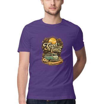 Good Times Retro Graphic T-Shirt for Men – Vintage Beach Travel Printed Tee | Stylish Half Sleeve Round Neck T-Shirt for Men | SkyingGlitty