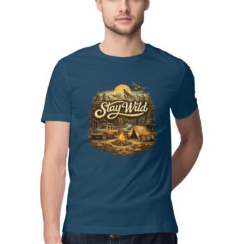 Stay Wild Retro Graphic T-Shirt for Men – Vintage Adventure Printed Tee | Outdoor Camping Half Sleeve Round Neck T-Shirt | SkyingGlitty