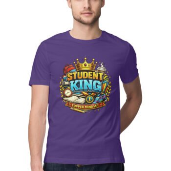 Student King Graphic T-Shirt – Topper Mindset Printed Tee | Trendy Student Wear | Motivational Round Neck T-Shirt | SkyingGlitty