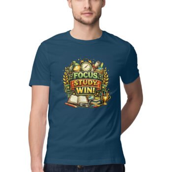 Focus Study Win Graphic T-Shirt – Motivational Student Printed Tee | Trendy Study Motivation Round Neck T-Shirt | SkyingGlitty