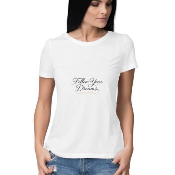 Follow Your Dreams Women Graphic T-Shirt – Minimalist Elegant Printed Tee | Classy Half Sleeve Round Neck T-Shirt for Women | SkyingGlitty