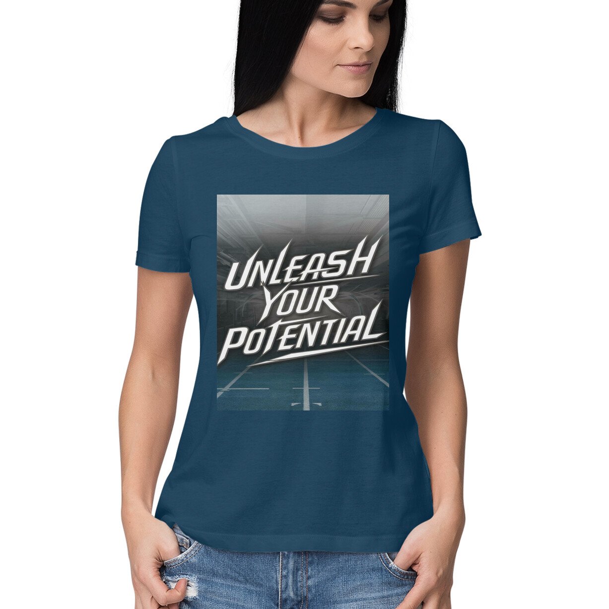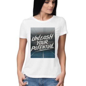 Empower Your Game: Sports-Themed ‘Unleash Your Potential’ Women’s T-Shirt Collection