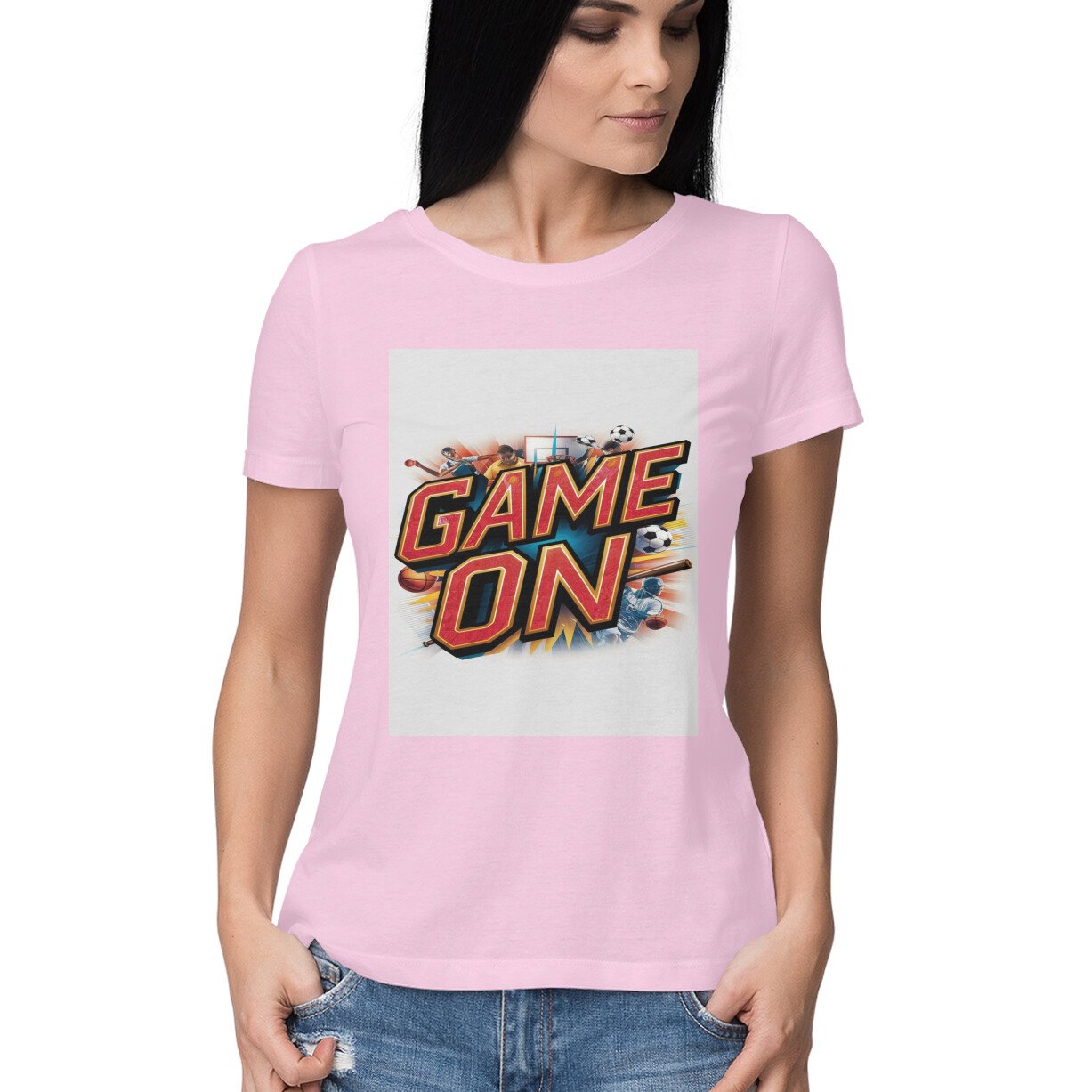 Elevate your sporty style with our ‘Game On’ collection of women’s T-shirts! Designed to inspire and empower, these tees feature dynamic sports-themed designs that fuse fashion with athleticism. Whether you’re hitting the gym, cheering from the sidelines, or simply embracing an active lifestyle, these shirts are your perfect match. Explore our range and gear up to make every day a winning moment!