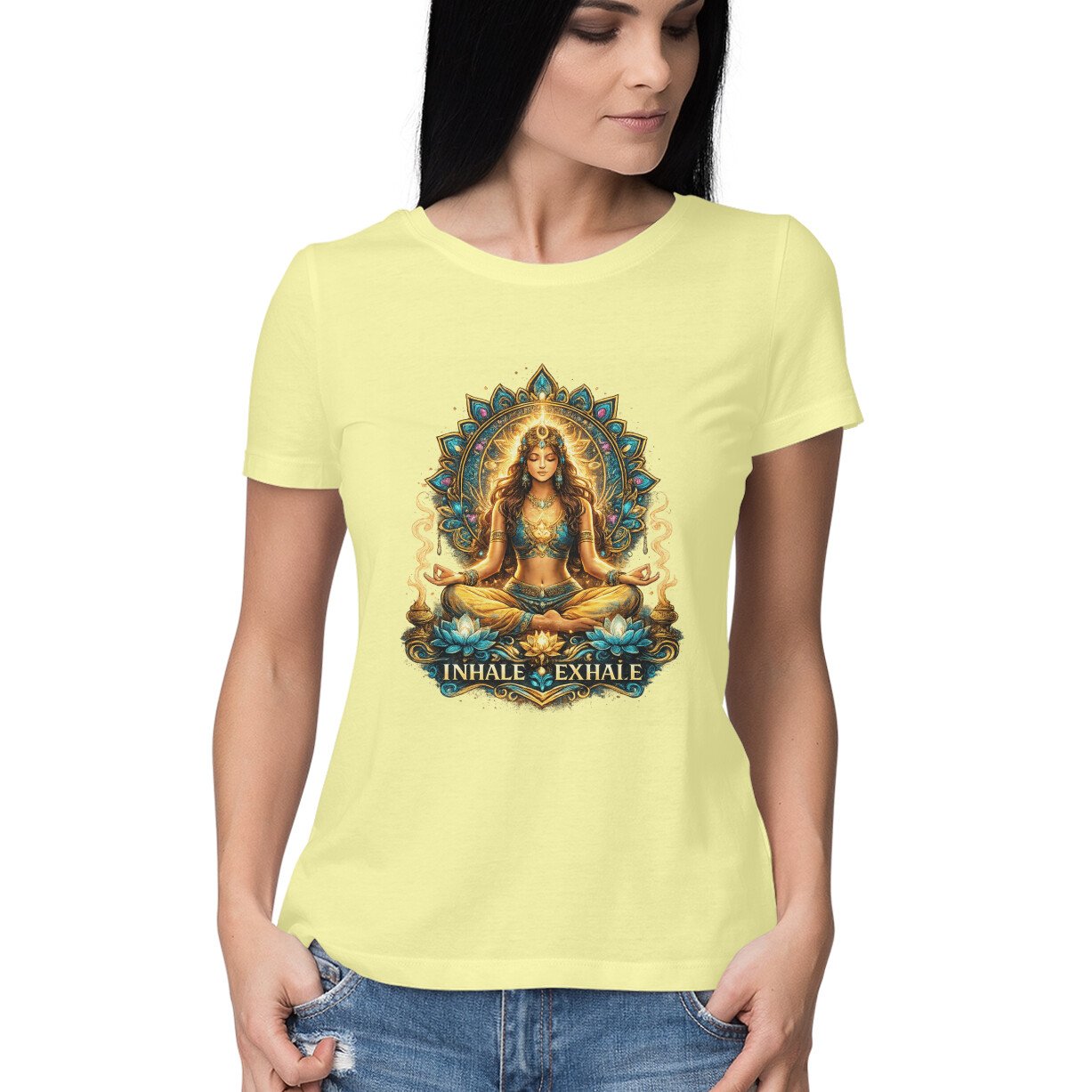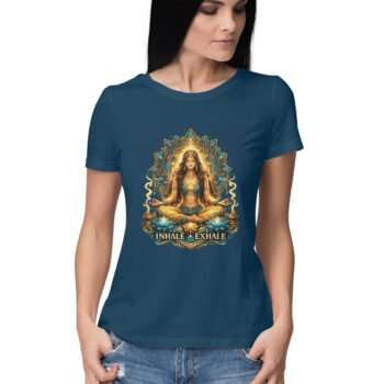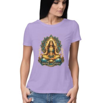 Inhale Exhale Women Yoga Graphic T-Shirt – Spiritual Mandala Printed Tee | Stylish Half Sleeve Round Neck T-Shirt for Women | SkyingGlitty